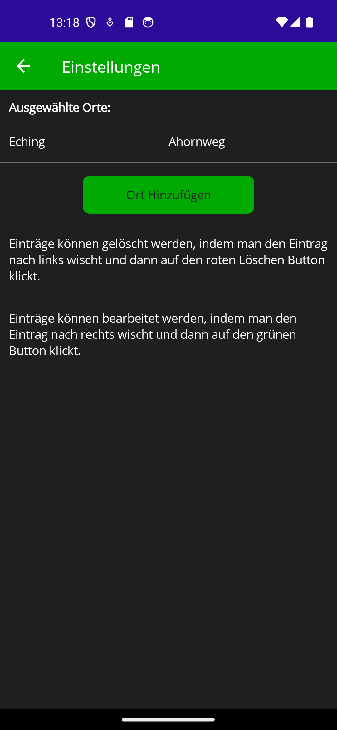 Einen neuen Ort können Sie durch tippen auf die Schaltfläche: Ort hinzufügen erstellen.